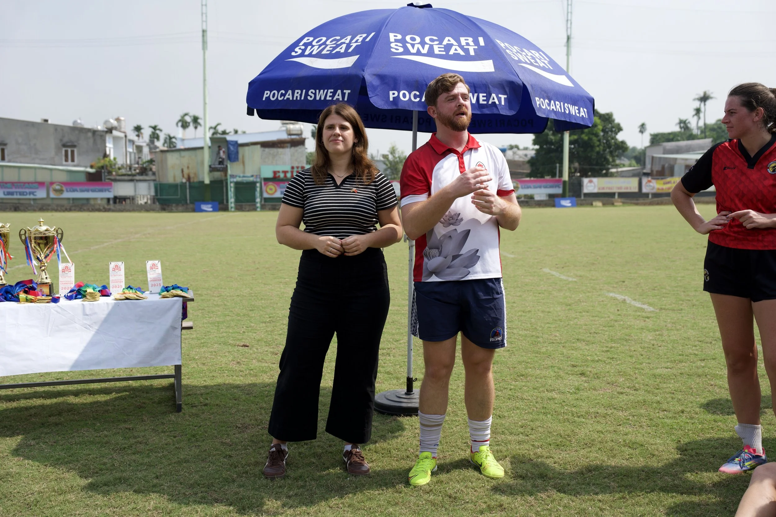 Left: Founder & CEO Johnny with British Consul General, Alex Smith during the presentations of the inaugural Ao Làng 7s Series Finals in January 2026.